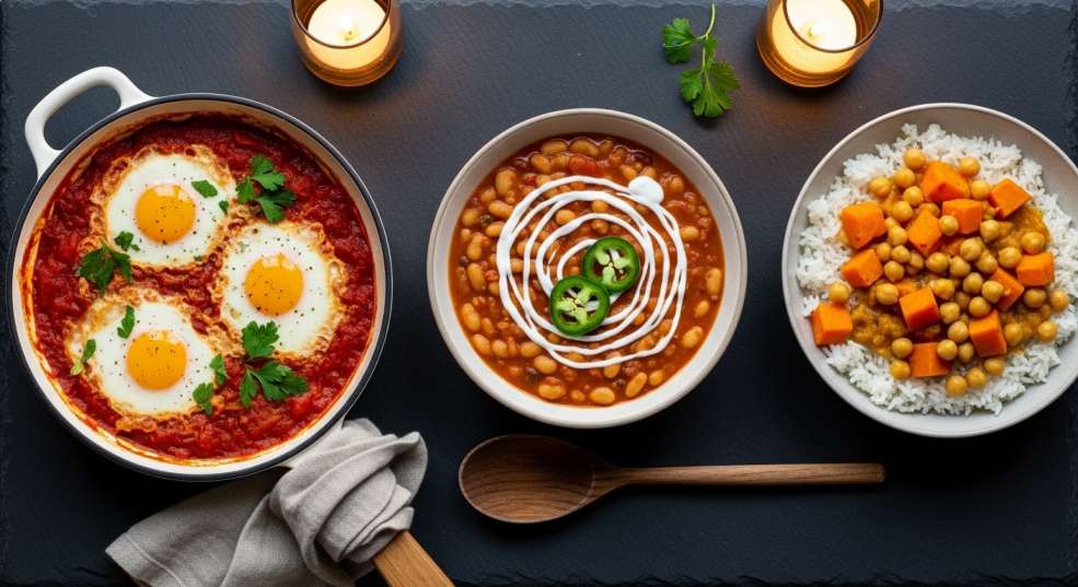 This is a crowd-pleasing dinner that freezes beautifully. Sauté onion, garlic, and diced green pepper. Add two cans of white beans (or kidney beans), a can of diced tomatoes, 2 cups of vegetable broth, chili powder, cumin, and oregano. Simmer 30 minutes. For a meat version, add 200g of ground pork or chicken sausage — still keeping costs well under $2 per serving if using budget cuts. Top with sour cream and green onion.